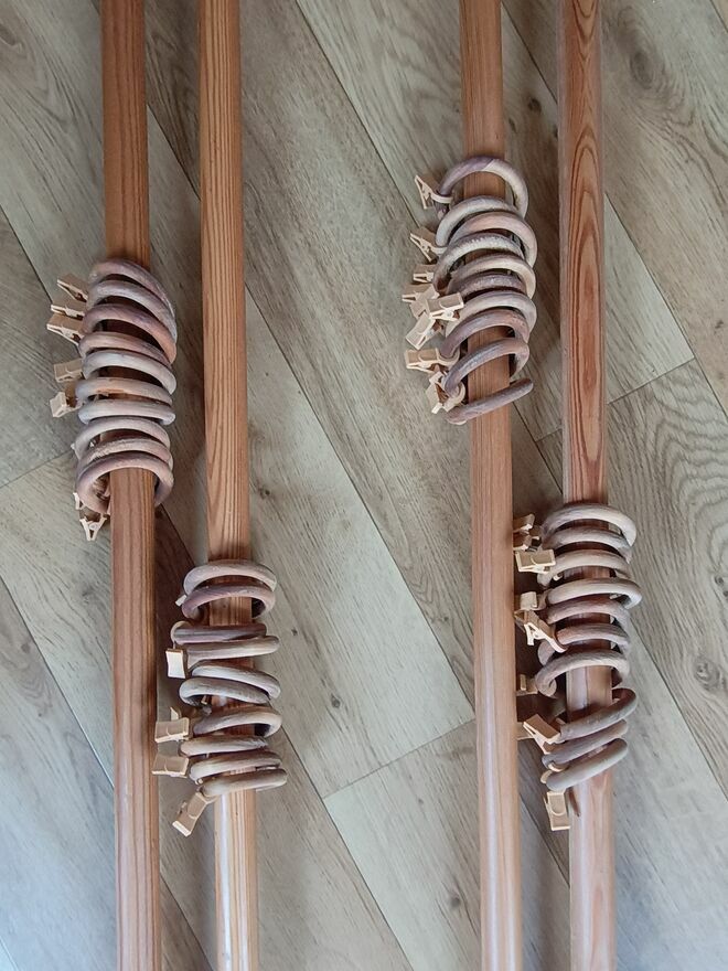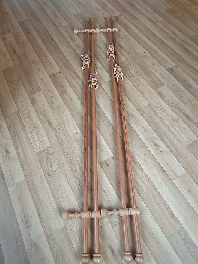 Podwójne karnisze drewniane o długości 230 cm. Cena za obydwa karnisze.Sprawdź zainteresowanie tym ogłoszeniem